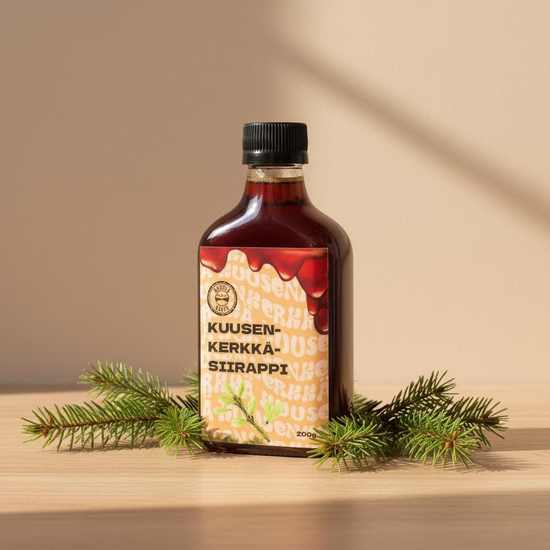 Tämä kuusenkerkkäsiirappi on valmistettu perinteisin menetelmin, mikä takaa aidon ja puhtaan maun. Nauti suomalaisen metsän aarteista ja tuo luonnon oma maku osaksi ruoanlaittoasi kuusenkerkkäsiirapin avulla!